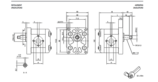 齒輪泵是一種回轉泵。它依靠泵缸與嚙合齒輪間所形成的工作容積變化和移動來輸送液體或使之增壓。由兩個齒輪、泵體與前后蓋組成兩個封閉空間,當齒輪轉動時,齒輪脫開側的空間的體積從小變大,形成真空,將液體吸入,齒輪嚙合側的空間的體積從大變小,而將液體擠入管路中去。吸入腔與排出腔是靠兩個齒輪的嚙合線來隔開的。齒輪泵的排出口的壓力完全取決于泵出處阻力的大小。